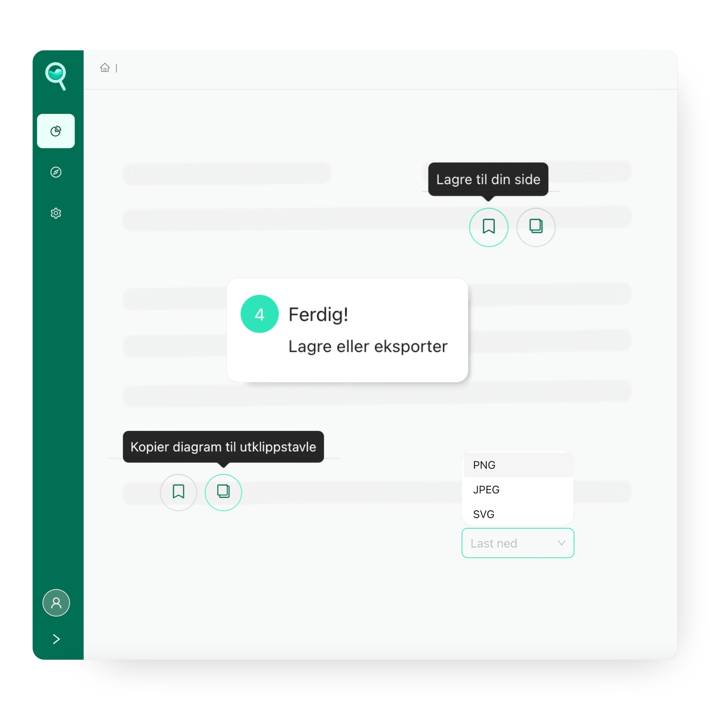 Løsningen gjør det lett å dele og laste ned grafene som bildefil eller som et Excel dokument.